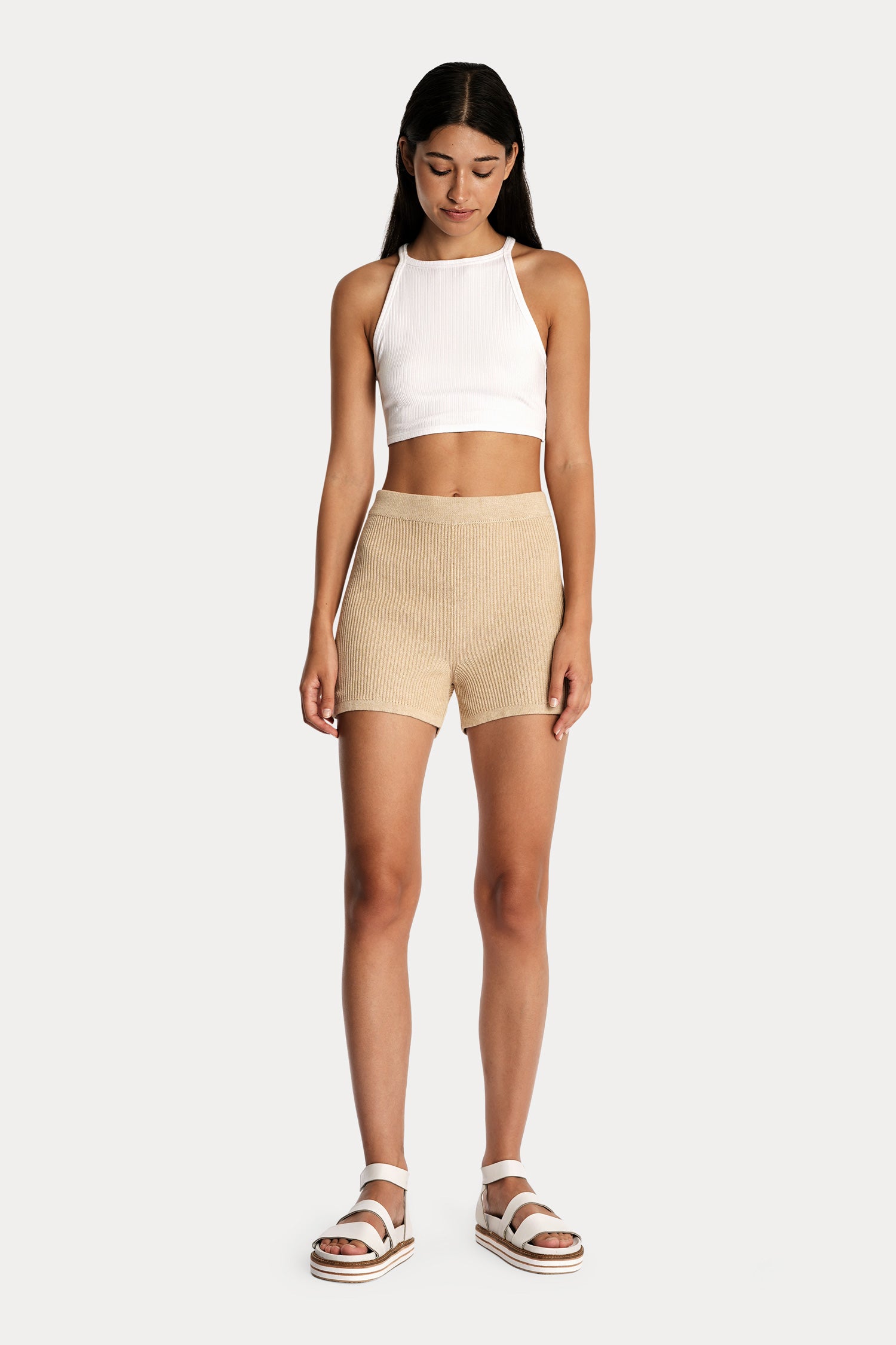 Effortless to style, it pairs naturally with our Linen Shorts or Linen Trousers, Knitted Cotton Rib Pants or Knitted Cotton Rib Shorts, or our matching Eco Rib Stirrup Leggings or Eco Rib Biker Shorts. Comfortable and naturally breathable, it wears well casually on its own, layered under an open shirt, cardigan, or jacket on cooler days, or for easy movement during yoga, Pilates, dance, or movement sessions. This understated crop top brings modern simplicity and a sense of relaxed, cool ease to casual, everyday style.