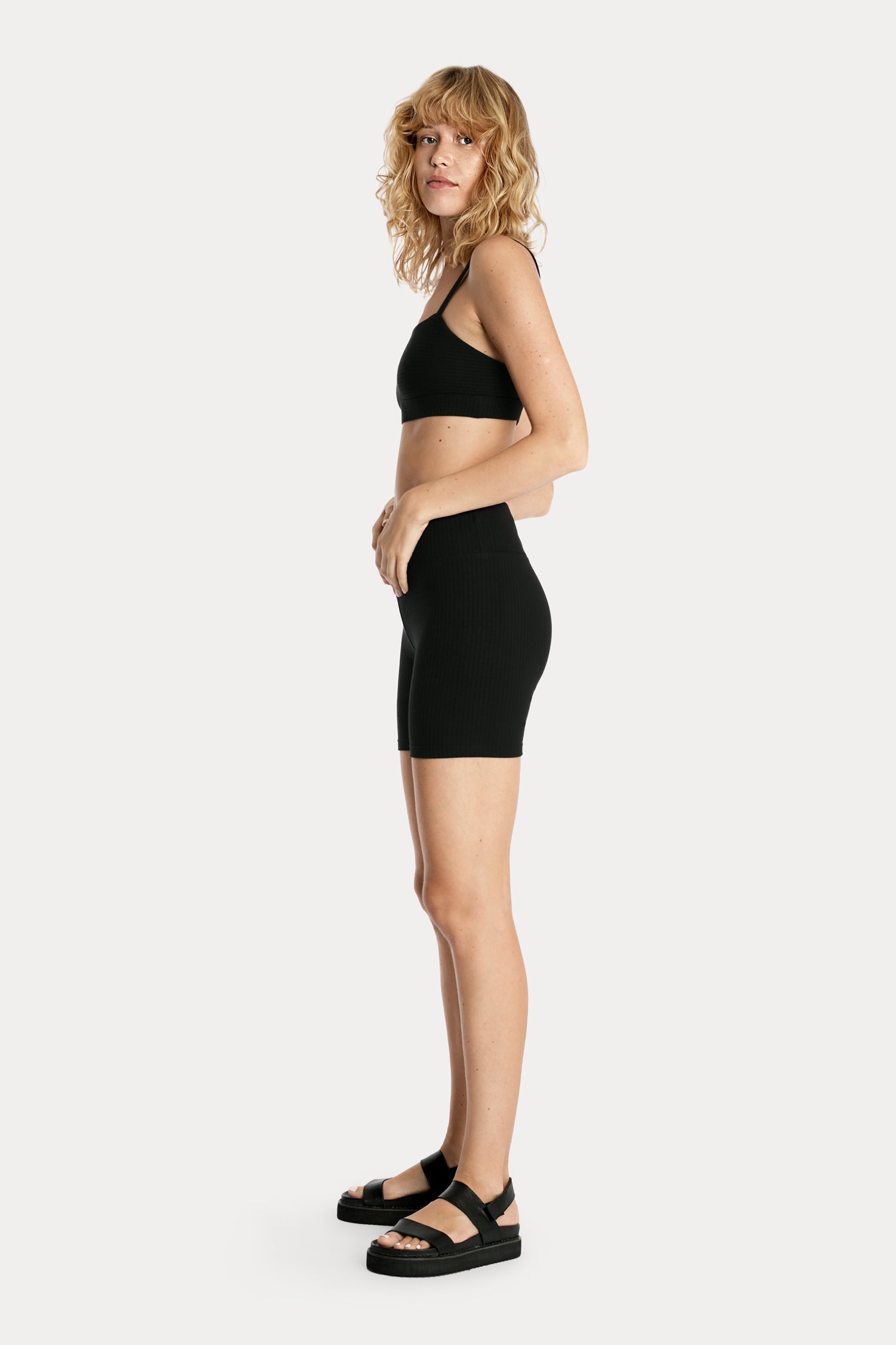 A modern medium-support bralette designed for ease and movement, featuring adjustable straps that can be worn straight or crossed over the back. Crafted with soft, eco-friendly ribbed LENZING™ ECOVERO™, double fabrication, and a wide elastic band for comfortable support and hold.